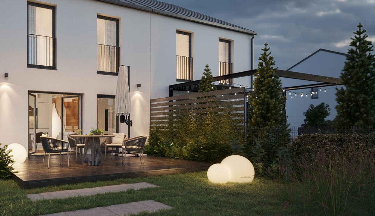 Chcemy by Twój nowy dom był Twoją ostoją, miejscem w którym nastroisz nie na dzień i naładujesz baterie. Będziesz budzić się z widokiem natury za oknem, popijać świeżą kawę na tarasie swojego domu, podziwiając pięknie zaaranżowany ogród o wschodzie Słońca. Wieczorami popijając lampkę ulubionego wina podczas rodzinnego seansu filmowego, lub ze znajomymi na tarasie.