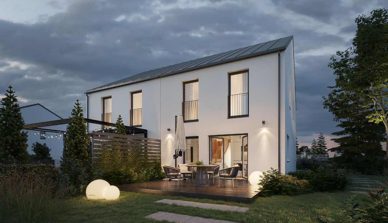 – Każdy z dom w posiada powierzchnię 122m2. Na parterze znajduje się salon z aneksem kuchennym, z wyjściem na przestronny ogród, hol wejściowy, toaleta, dodatkowa przestrzeń na przechowywanie pod schodami do własnej aranżacji. W bryle budynku znajduje się również jednostanowiskowy garaż wraz z aneksem, w kt rym znajduje się miejsce na jednostkę wewnętrzną dla pompy ciepła.